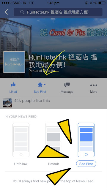 各 Runhotel 的粉絲和讀者,希望大家可以幫幫手,進入我們 Facebook Fan Page ,然後選搶先看(See First) ,就能確保大家一定能收看到我的優惠資訊,和最新旅遊消息了。