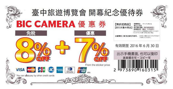 BIC CAMERA消費使用的優惠券。適用8%日本免稅資格的海外旅客 可享有7%折扣優惠 藥妝 食品 化妝品 行李箱 電器 飯煲 相機 手錶 ipad 電話 龍角散