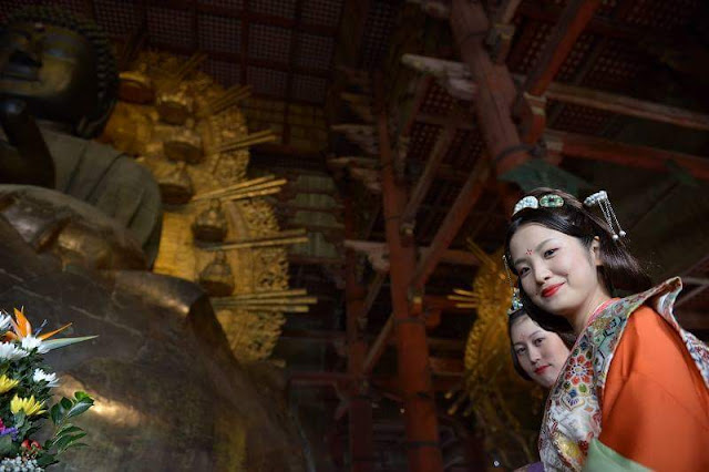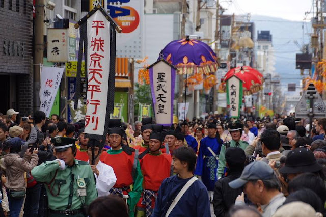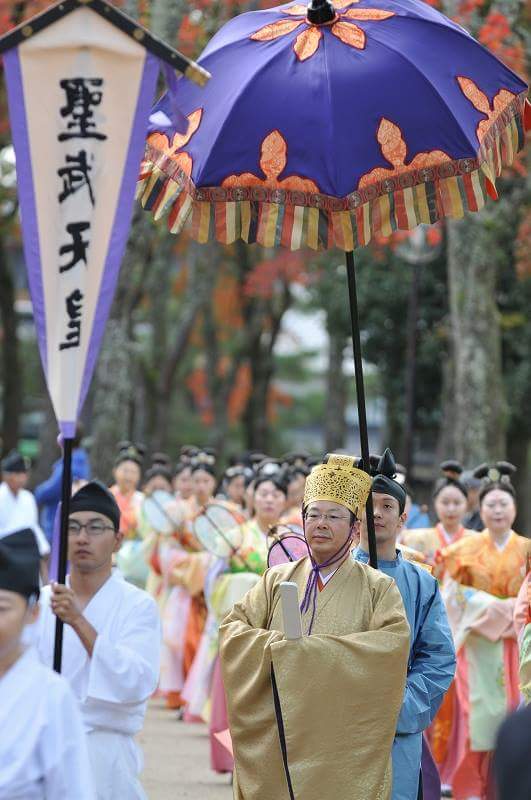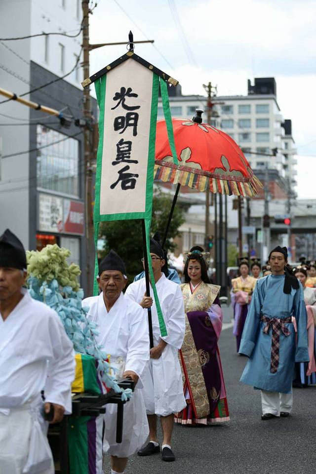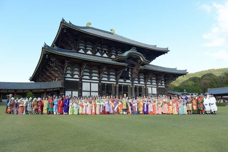 該活動由平城京天平祭執行委員會主辦,今年是第3次。約100名男女分別扮演創建東大寺的聖武天皇、光明皇后以及眾隨從等,參加了出行儀式。