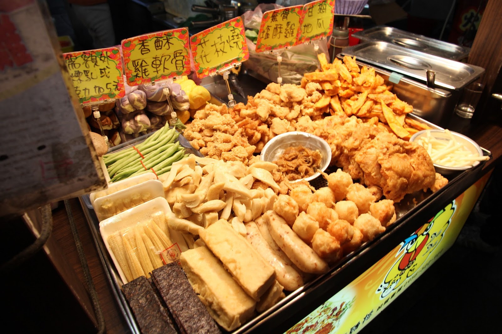 寧夏夜市的小吃充滿濃濃的臺灣味,香噴噴的滷肉飯和雞肉飯、清甜鮮美的蚵仔煎和大腸蚵仔麵線、現炒入味的沙茶牛肉、滋補養顏的豬肝湯、來自府城的臺南碗粿、沙拉魚卵、吳郭魚湯等等,都讓人忍不住食指大動。夜市另一邊的攤販,以新奇好玩的雜貨和玩具為主,販售的商品頗具流行感,價格不貴,在飽嚐美食之餘,不妨也來走走逛逛。