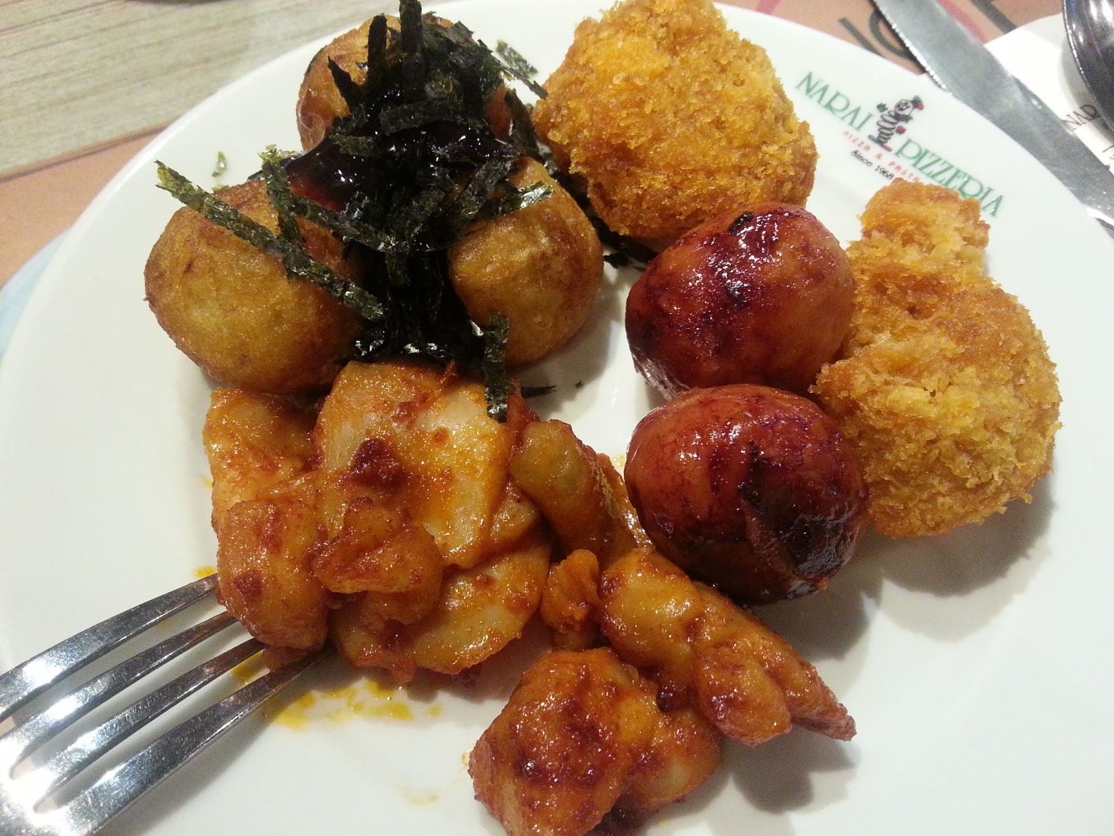 下面四款從日式墨魚丸起順時針方向是炸豬扒、Issan泰式豬肉丸、泰式雞塊,是說都很好吃~!(我是不是餓太久了?)