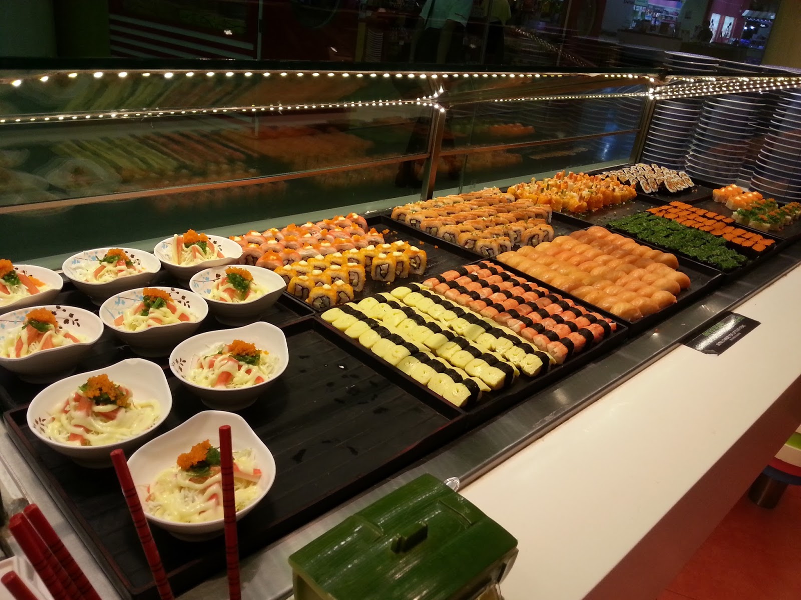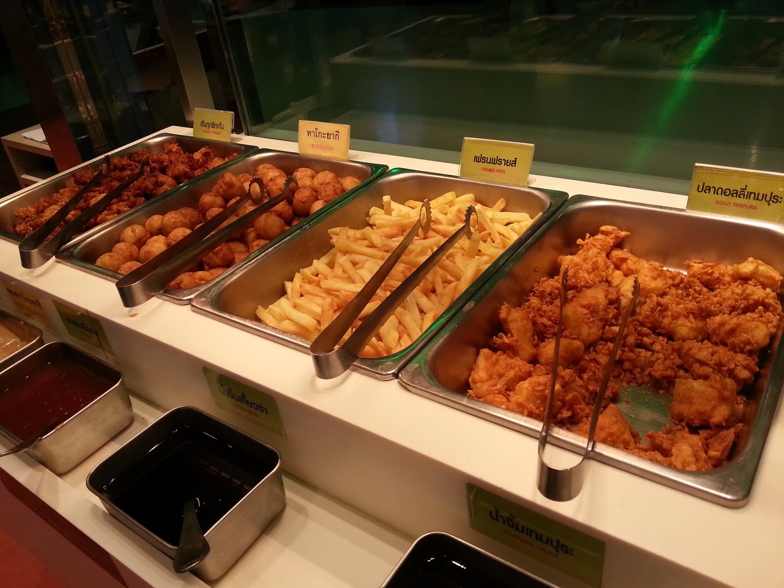 進去入座後,職員簡單交代一下限時90分鐘,不要浪費食物等等,就可以去拿即食的,名字中有Sushi Buffet字眼,當然會有壽司,質素在泰國同類型餐廳來說算還不錯(很多地方做的壽司實在別放進嘴巴比較好)