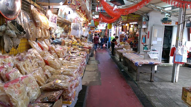 走進小路,2邊都有手信,海鮮海味購買