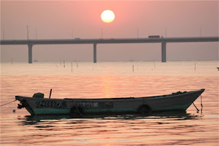 這裡其實還是著名的下白泥,吃完海鮮很多人到后海灣去看日落,此時海天一色分不清哪裡是天哪裡是海,真的好美啊。這后海灣大橋在落日美景中也變得如此壯麗,落日餘暉竟然讓整個世界變的如此美麗。
