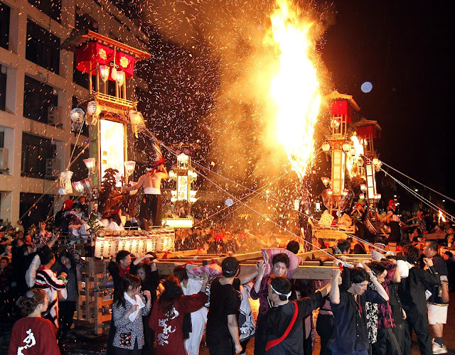 這個祭典最引人注目之處在於由眾人所舉起的兩座神轎相互進行的火攻,其聲勢浩大魄力十足的場景堪稱一絕。