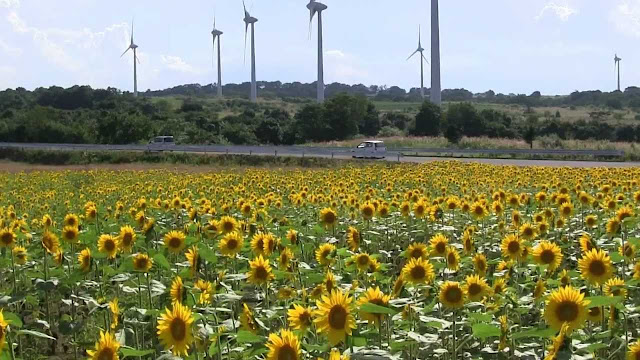 高原中佇立著33座約100公尺高的風車,景緻十分壯觀。