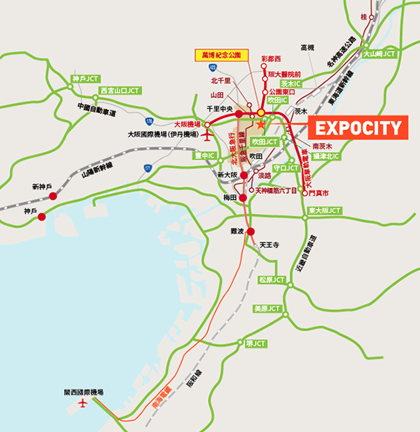 請由名神高速公路、近畿自動車道的吹田IC,或中國自動車道的中國吹田IC下。