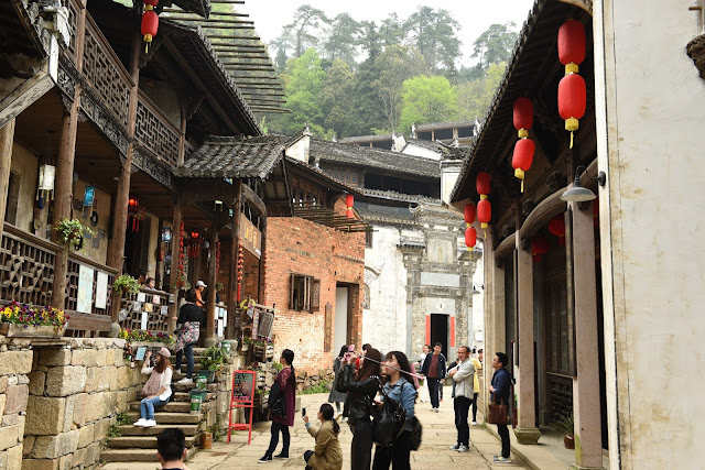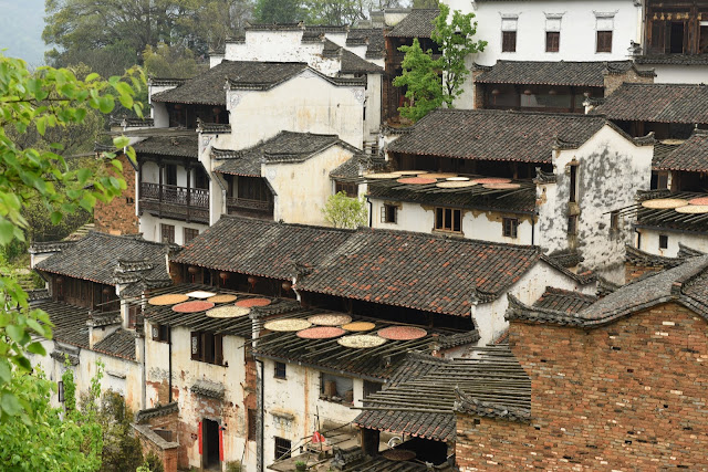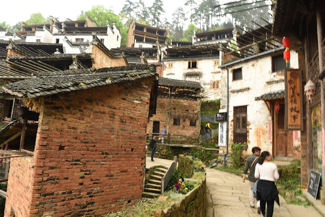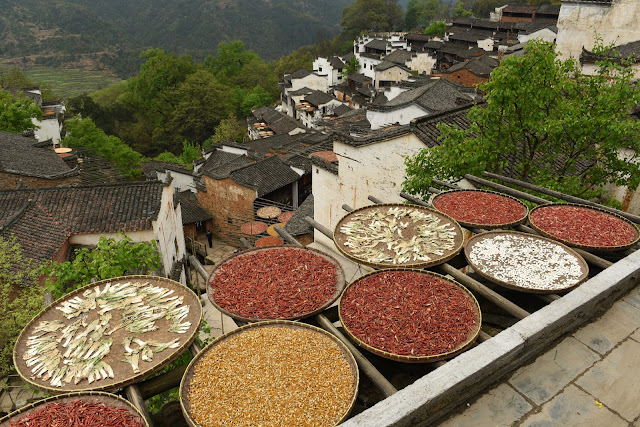 11:00 am 到達葟嶺山腳,在葟嶺山腰吃午飯。 觀看這個建造在山坡上的古村和屋前屋後架出的晒秋盤子。