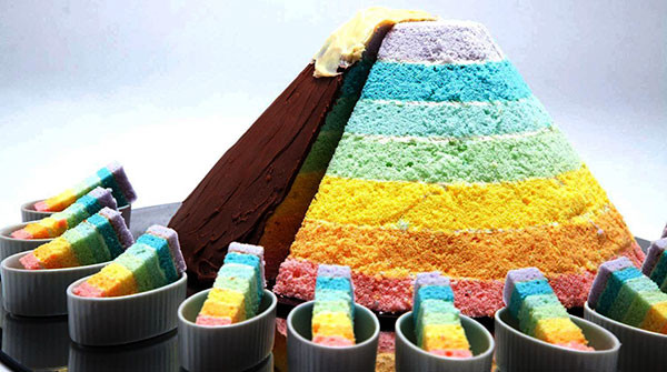 ■「山」の中身は七層の色鮮やかなレインボーケーキ!!『マウンテン ザ レインボー』