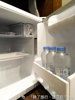 冰箱附有免費瓶裝水。