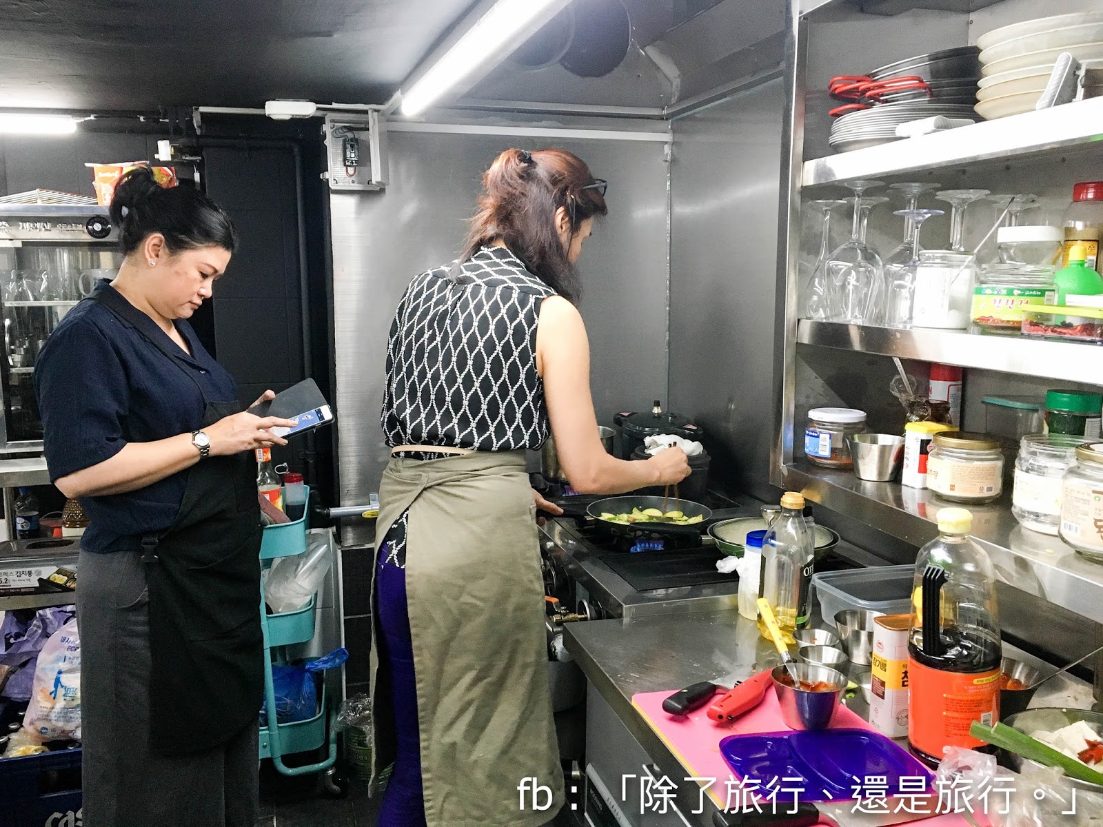 如果對韓國烹飪有興趣,還可以跟老闆娘在民宿附設的餐廳學習煮幾道韓國菜(右邊的老闆娘就是大廚!)!