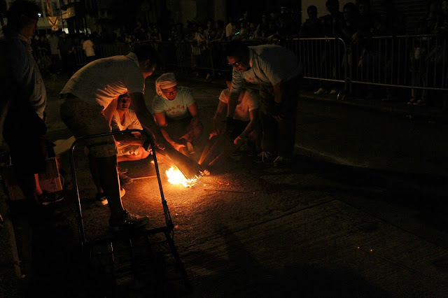 就係用大火燒著數以千計既香支,最後插成龍首至龍尾各部份