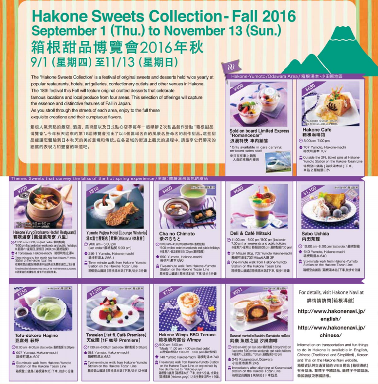 以充滿魅力的溫泉街-箱根為活動背景的「箱根甜品博覽會2016秋」至11月正熱烈舉行中。
