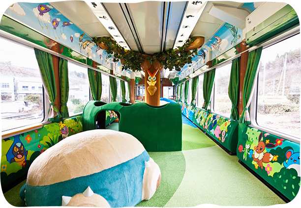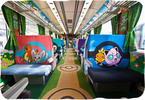 座椅的靠背全部採用色彩鮮艷的Pokémon圖案的指定座席車廂、裝滿各種POKÉMON遊樂器材的遊戲車廂等,列車內的各個角落都能與可愛的POKÉMON角色們相遇!