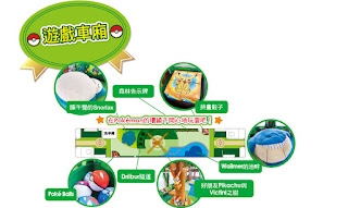 寬敞的車廂地板上有Snorlax的沙包坐墊、Drilbur的隧道等Pokémon比比皆是,每個設備都可讓孩童們開心地玩耍。