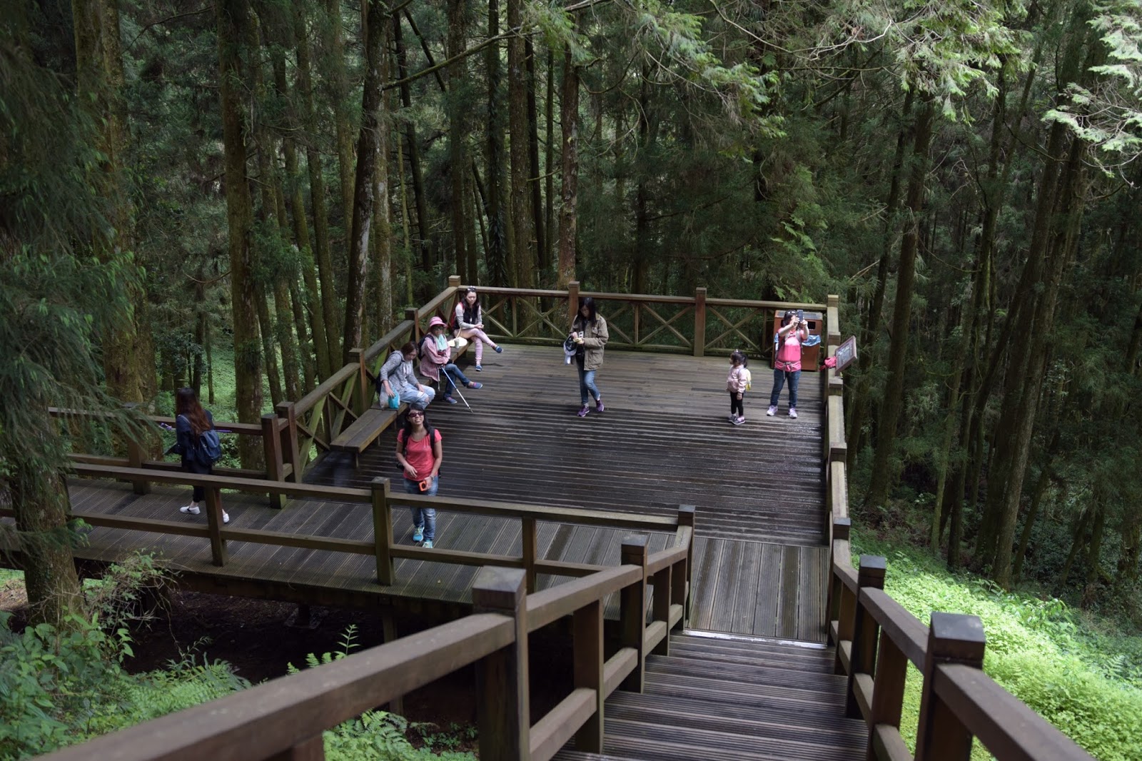 這個很特別要說一下,此觀景台是用來觀看阿里山28號巨木的。28號巨木是巨木群棧道中最為高大,樹齡最久遠之巨木,但是因拍出來沒有多特別我便沒多拍,改為拍拍遊人在這寧靜的環境觀看巨木也很好呀。