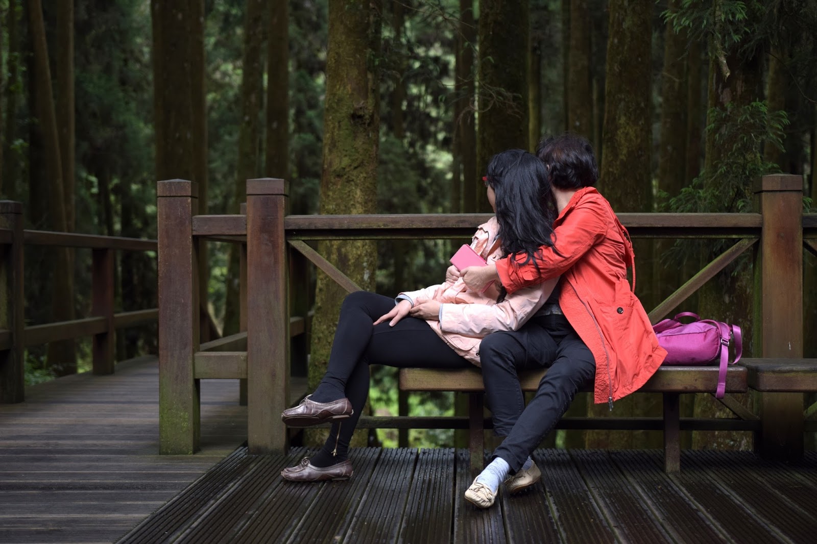 | 依偎在一起觀木的母女 |
