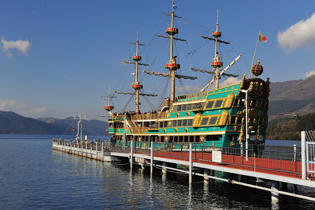 碼頭對面有一間很大的酒店,Hakone Hotel。 廣告牌上寫上自助午餐只需要 ¥2900,非常有吸引力 。我們乘坐 1:15 pm 的海盜船前往桃源台港。