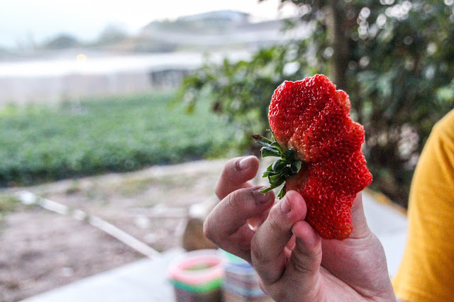 其中一個以元朗為終點站的好處是:可以順道親手摘下又大又甜又多汁的士多啤梨,好好地慰勞自己~不過消費不低,盛惠$80/磅,或是任摘即食的$120/人。