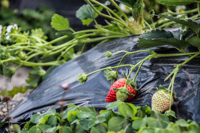 一大塊士多啤梨園,途經已經聞到陣陣的士多啤梨味,把我們吸引了入去~ |