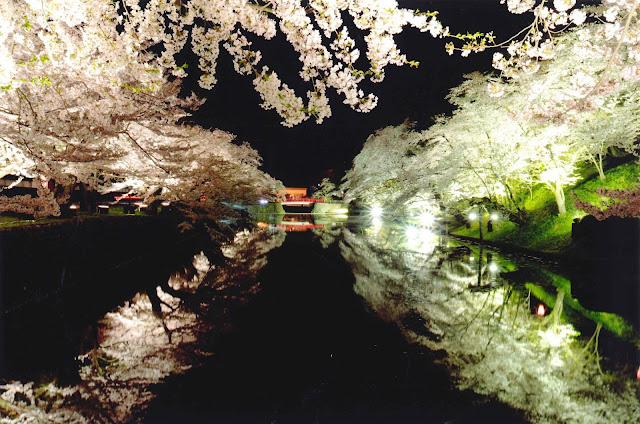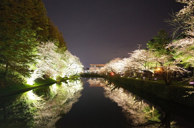 護城河二旁開滿櫻花 非常獨特的美景