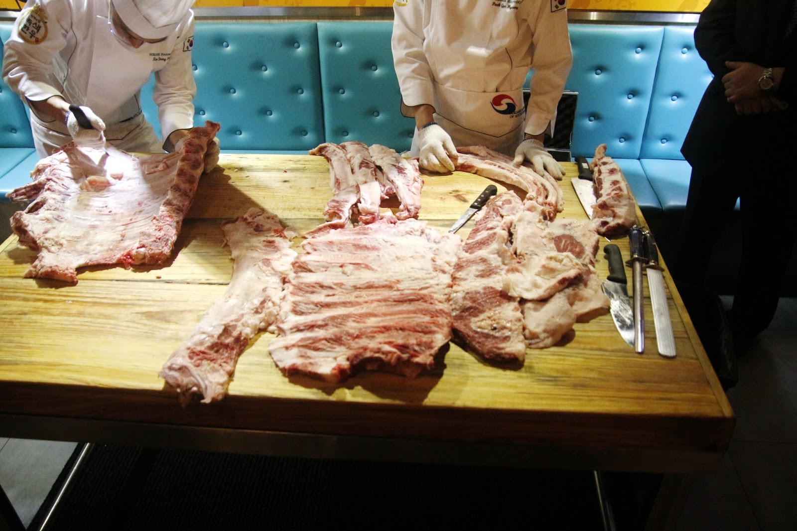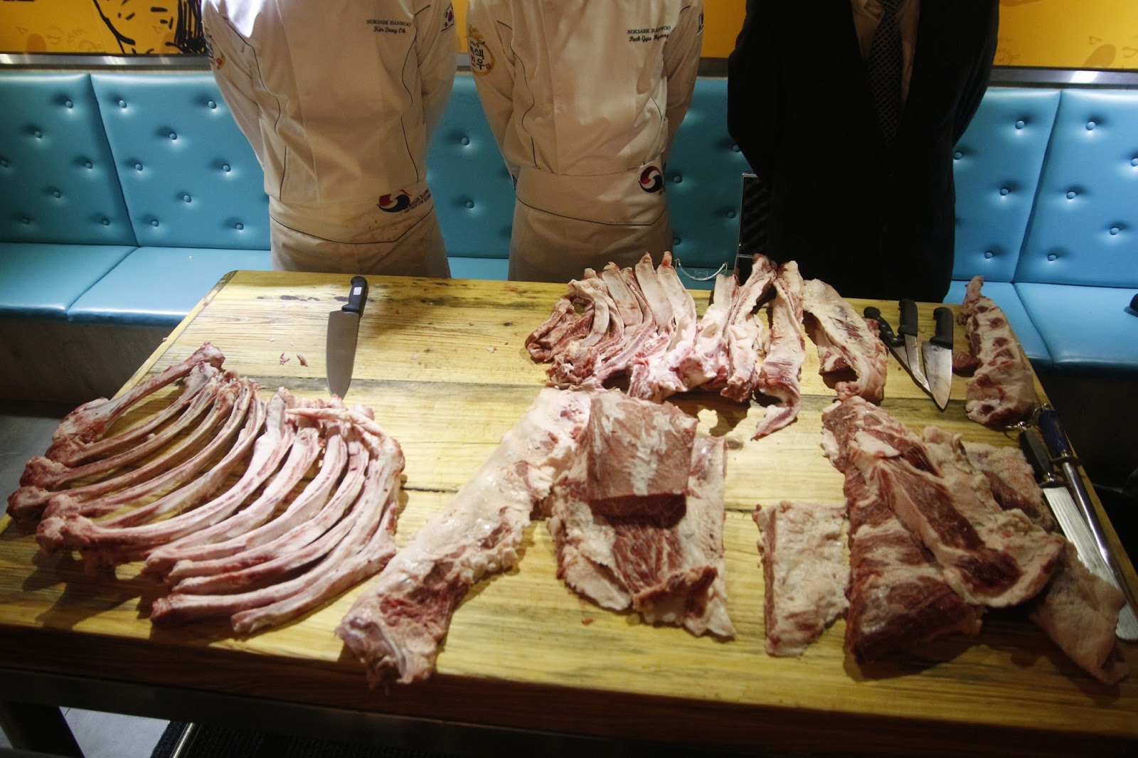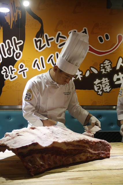 炑八韓烤請來專業既金師傅即席表演處理分解韓牛