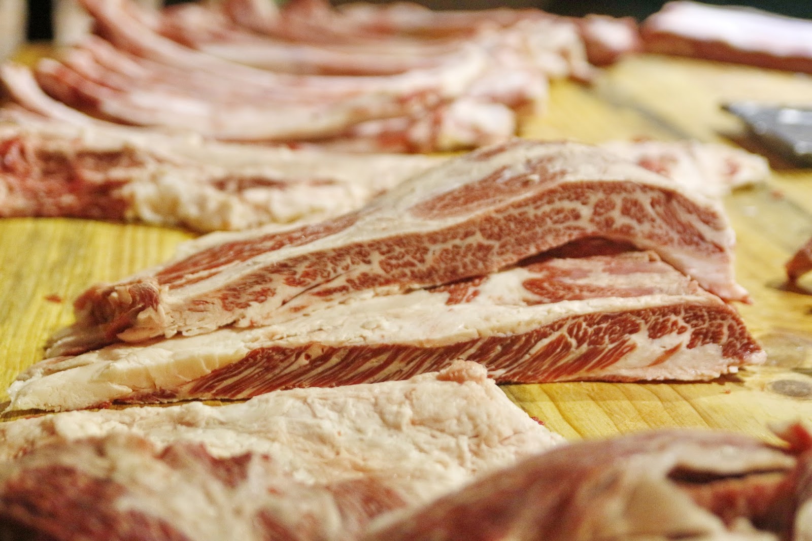 牛肋條是從後胸腹部位的內裙肉的「肋間條」,再依據脂肪劃上切口,然後切成條狀。而且,牛肋條擁有著濃厚的脂肪鮮味而在牛界博得超人氣水準;