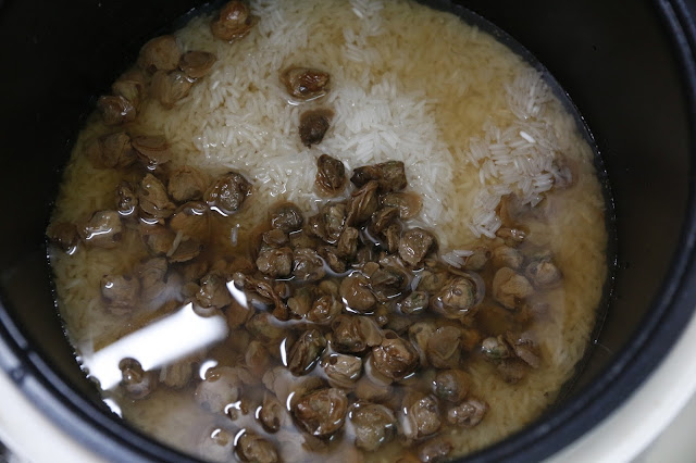 根據你想要的咸度,加配材料和白米一起煮成飯