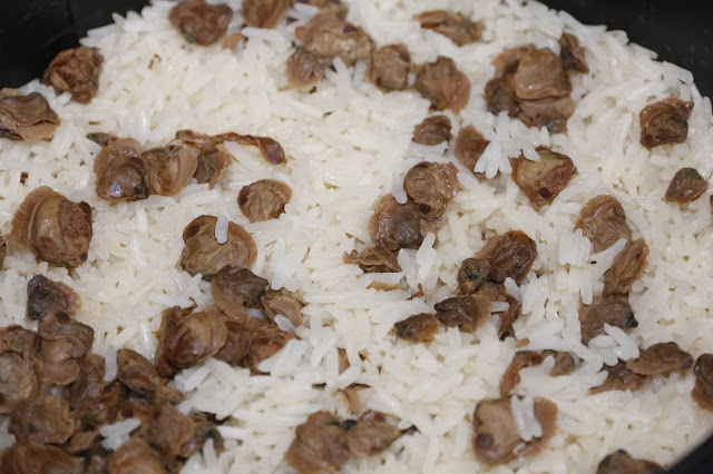 用上當地的蜆肉做飯素