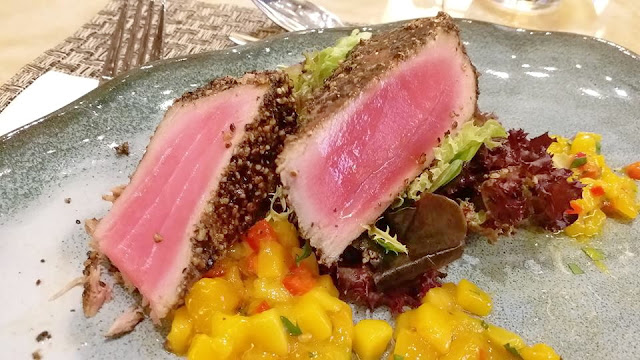 今次品嚐的前菜有黑椒吞拿魚伴芒果沙沙醬