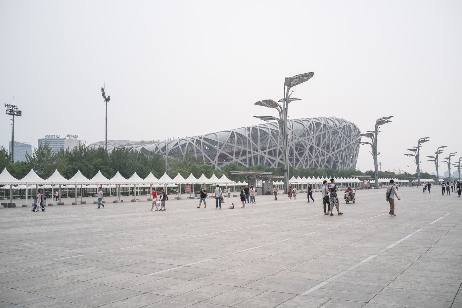 需要再次強調北京由一個地方到另一個地方真的非常費時,不知不覺已經是下午5時多,天氣報告提示晚間時段開始下大雨,而且會大得非常誇張,所以要盡快完成戶外的景點(去歡賞鳥巢和水立方),它在奧林匹克公園同奧體中心兩個地鐵站的中間,我是從公園進入在中心離開,兩個站之間的距離大約是香港的太子站到油麻地站,佔地很廣。園區是免費入場但是不可以在內騎腳踏車,只能以步行形式完成觀賞,如果你想觀賞它的夜景需要等到晚上7時30才會開燈,可惜天色突變而且刮大風,心知不妙應該不用多久便會下大雨,所以立即去下一個景點!