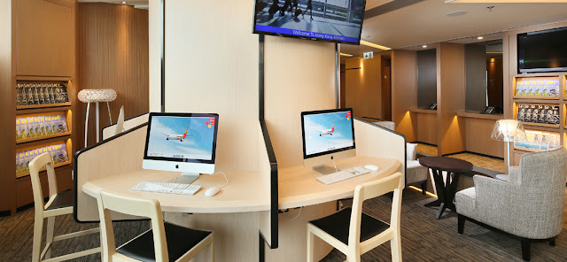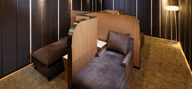 於等候登機或轉機期間,旅客可到休閑閣放鬆一下,在舒適的躺椅稍事休息,同時享用免費無線上網及充電服務。