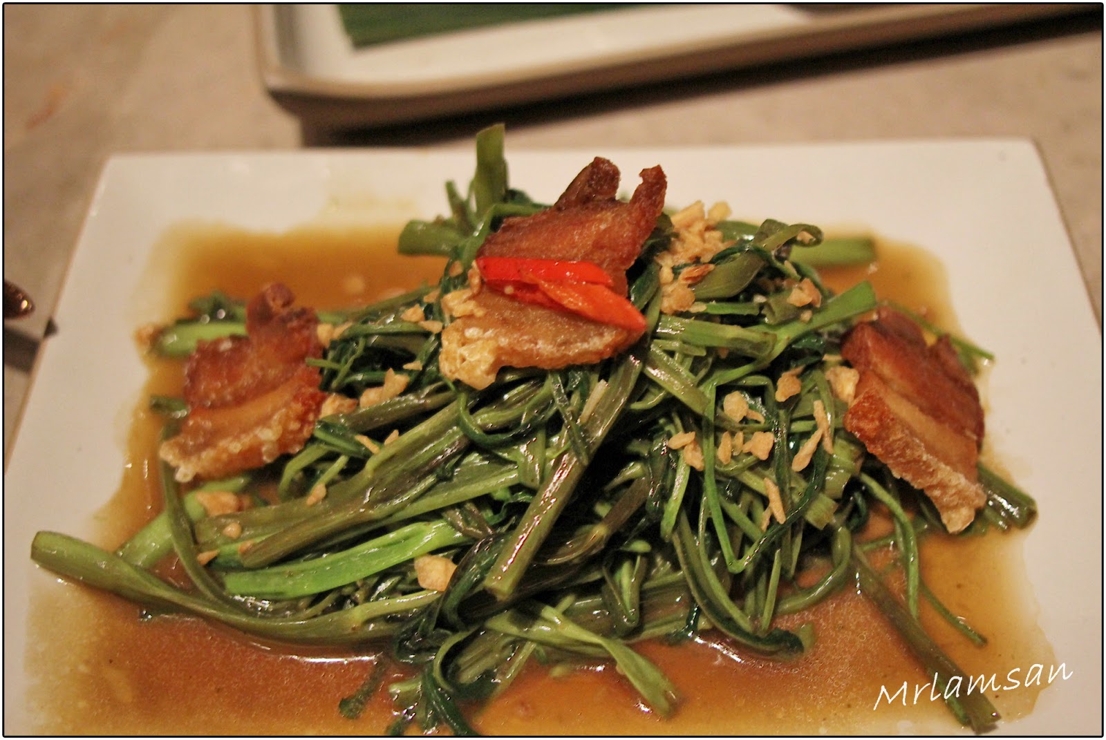 炒通心菜配脆皮豬肉