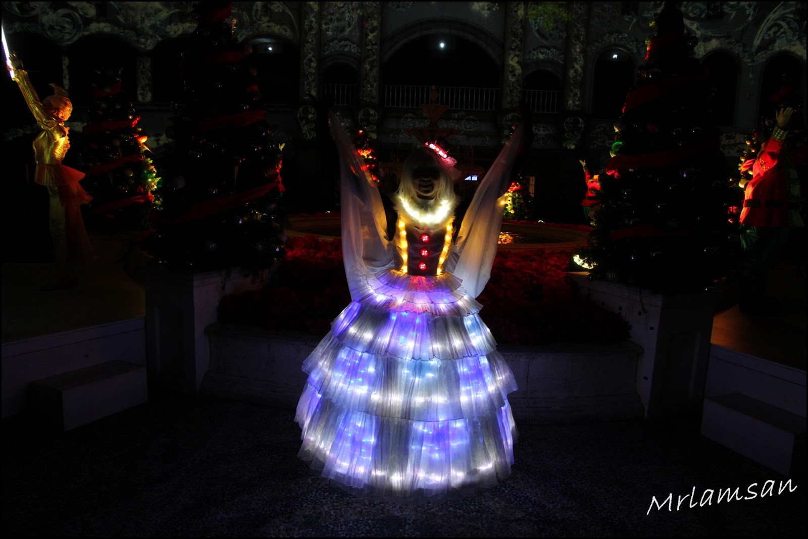 會有多位工作人員,穿上特製的燈光服務,配搭背景的燈光表演