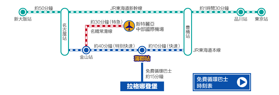 蒲郡站外有免費巴士直達 LAGUNA TEN BOSCH