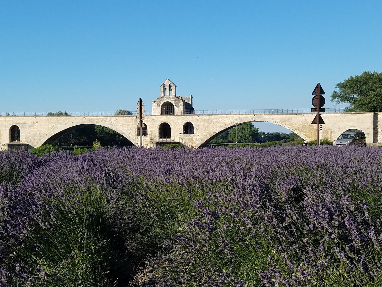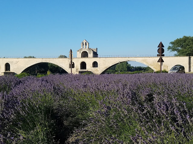 到達古城阿維儂 Avignon,阿維儂古橋前的薰衣草都開了花。