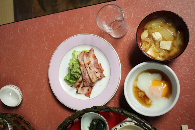 有溫泉蛋,煎煙肉