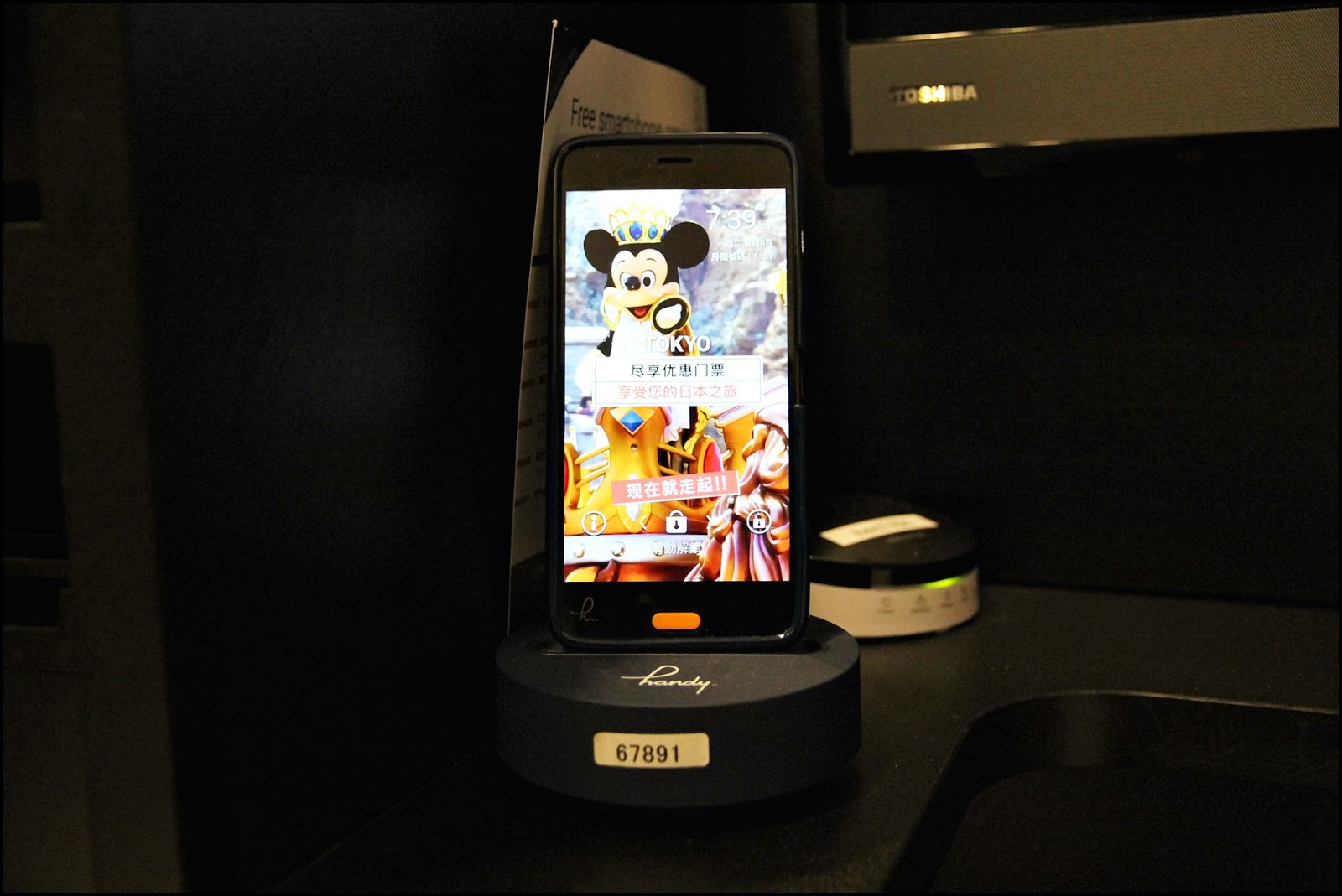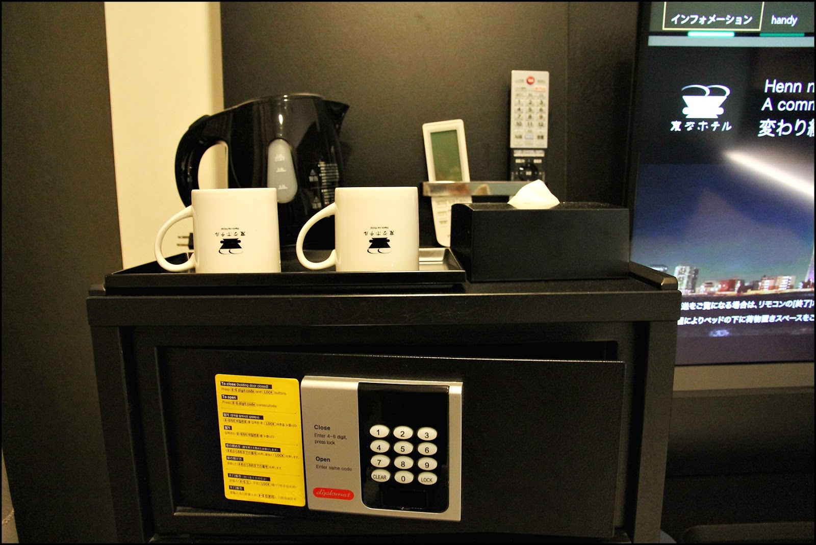 旁邊有夾萬,小雪櫃,電視下方有HANDY PHONE