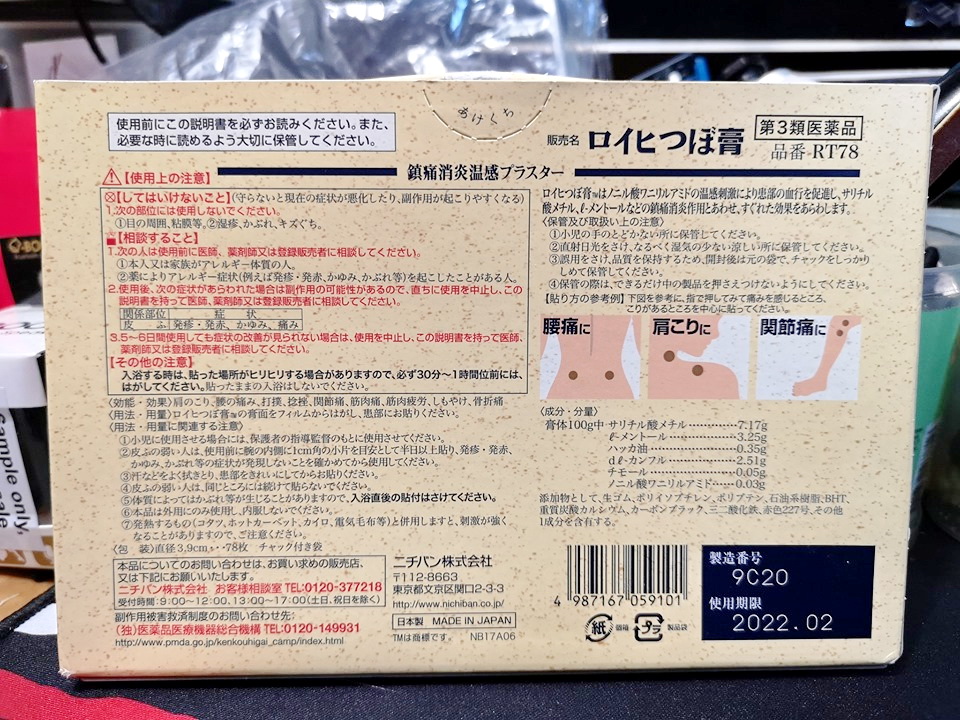 日本藥妝攻略 止痛貼推薦 買唔到三笠藥貼以外的選擇 鎮痛貼 代購 成份 大阪 東京 用法 ロイヒつぼ膏 大判 78枚