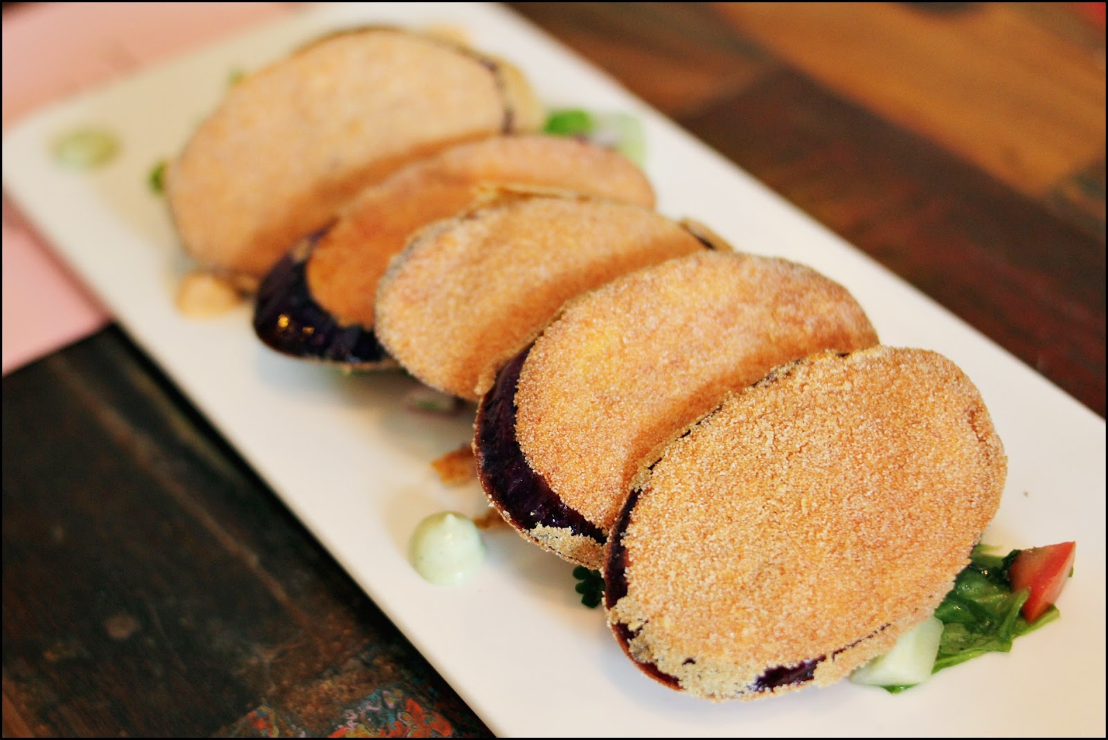 包上香料炸香,微微帶辣,質感不像茄子,幾開胃