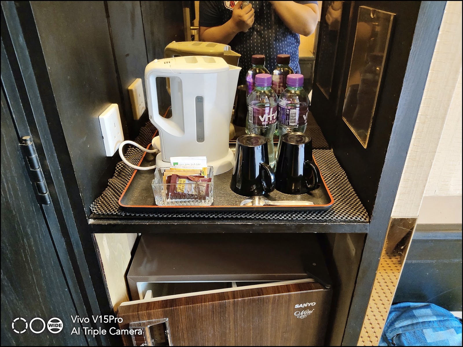 有免費茶包,2支免費水,整體就像3星級別酒店,只是空間大一些而已