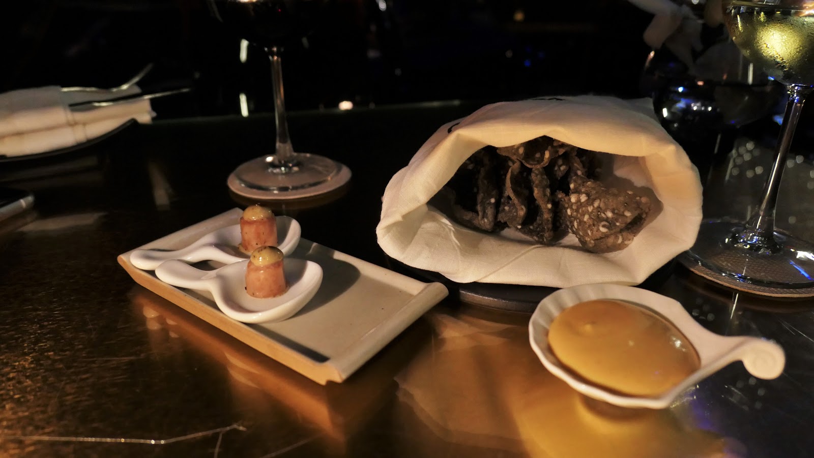 前菜有兩粒芥辣香腸及明輝蝦片 -----