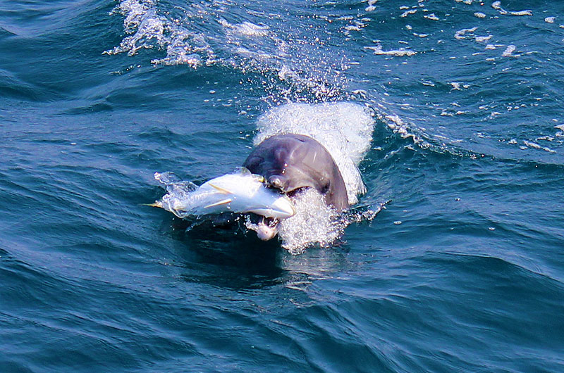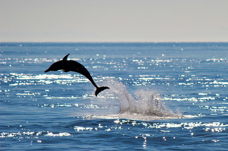 賞海豚行程中,全年都可與棲息在天草的野生瓶鼻海豚相遇。瓶鼻海豚非常親人,會與遊輪並排著游泳、在眼前跳躍,或銜著魚出現,讓我們看到各種表演。