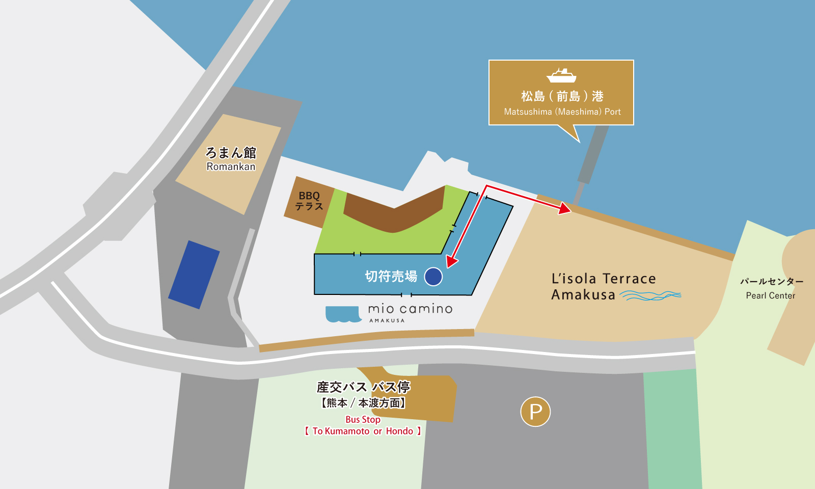 The nearest bus stop L`isola Terrace Amakusa(In front of the miocamino AMAKUSA)