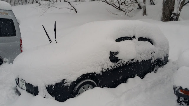 一小時的積雪已經令整架車掛滿白雪!