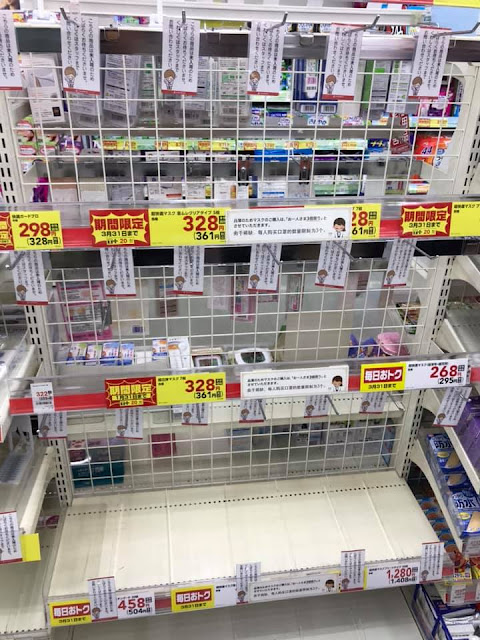 最初頭幾日,當地人不以為然,以為小流感,恥笑中國人搶買口罩,到了前2~3天,日本人開始發覺大獲了,全民一起搶