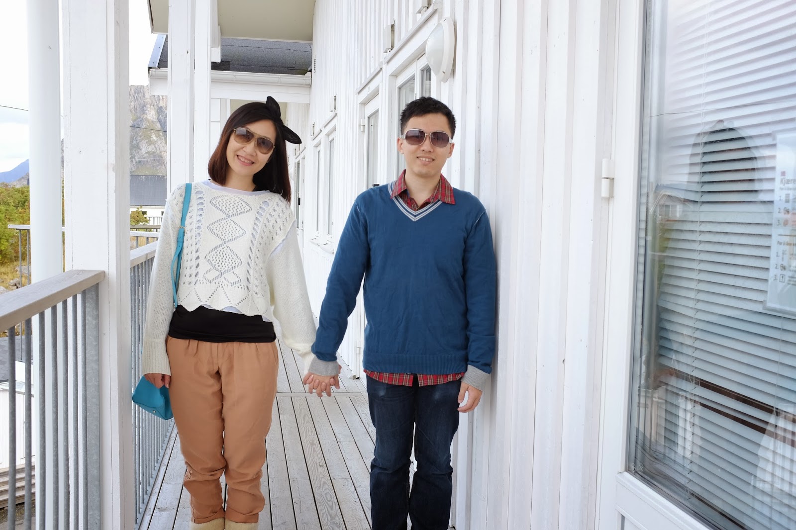 早上起來看了看天色心情頓時覺得一沉,好厚的雲呀還不時下著毛毛細雨,跟我印像中藍天白雲的Lofoten不一樣呀!!算了,天意難違,這些不是我們所能控制的事,別壞了遊玩的心情,雨天也有雨天的氣氛。況且昨天晚上也看到了北極光,我們也應該知足了。雖然天色陰沉,但景色和周圍寧靜的氣氛還是很不錯的,耳中聽到的只有遠處的漁船的引擎聲和對面小島的鳥叫聲。。。